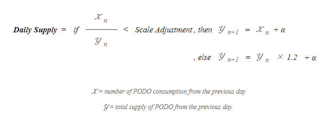 プレイヤー数の増加は、PODOトークンの発行量に大きく影響します。したがって、PODOの初期インフレ率は、本サービスの初期プレイヤー数の増加に応じて発行量を増やすことで調整されます。